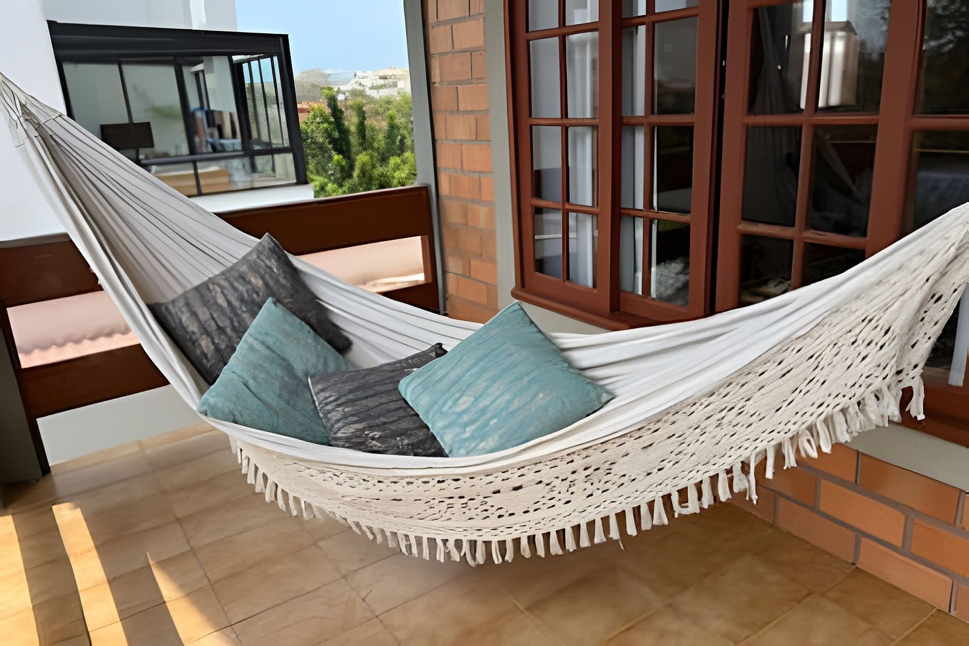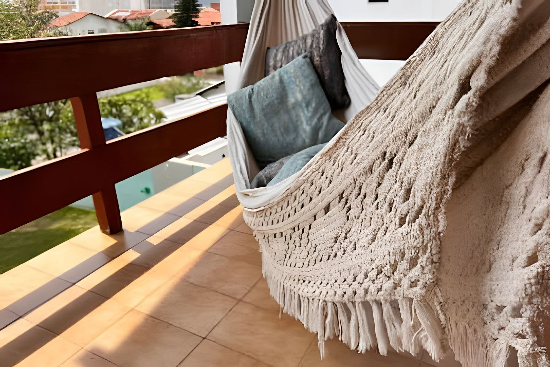 A Sacada com Rede: Este é o coração da experiência "Respire Liberdade". A sacada generosa com a rede é o refúgio perfeito. É o lugar onde o hóspede realmente sente a liberdade de parar, balançar, ler um livro e respirar a brisa sem pressa ou compromisso.